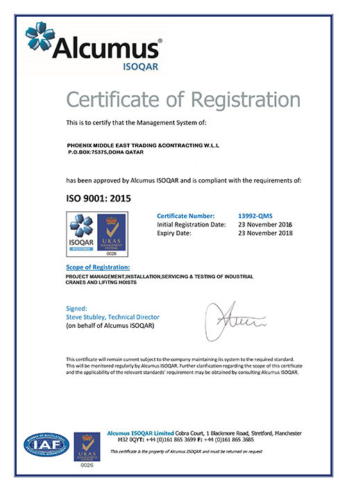 Phoenix Middle East Qatar is a service installation testing & commissioning, design supplying monorails, runway beams- Overhead cranes, Gantry cranes, Jib Cranes, Monorail hoists, and freestanding superstructures- in Qatar.