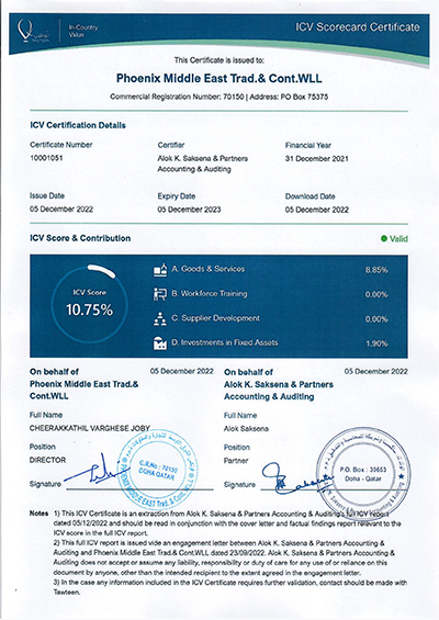 We are an ISO 9001: 2015, ISO 14001:2015, and OHSAS 45001:2018 certified company and secured ICV score operating in Qatar since 2012.Qatar.